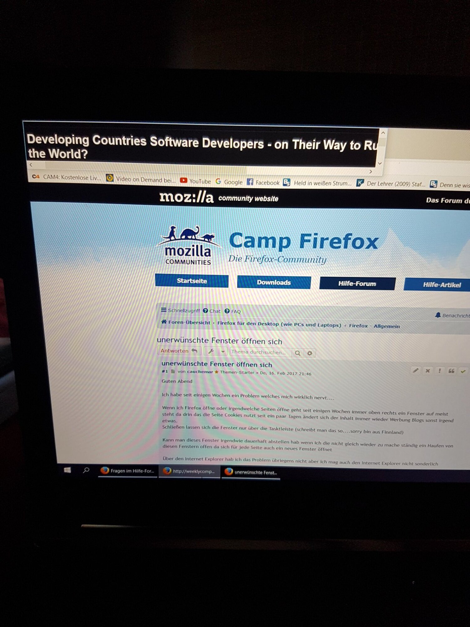 Wenn ich Firefox öffne oder irgendwelche Seiten öffne geht seit einigen Wochen immer oben rechts ein Fenster auf meist steht da drin das die Seite Cookies nutzt seit ein paar Tagen ändert sich der Inhalt immer wieder Werbung Blogs sonst irgend etwas.