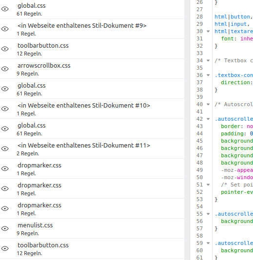 Auf der linken Seite der "Stilbearbeitung" sehe ich einige Einträge zigfach aufgelistet,