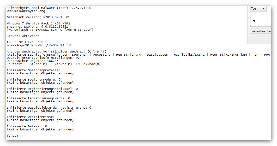 So, nach recovery hat malwarebytes im kompl. Suchlauf 1 Virus gemeldet und im Log wie folgt beschrieben: