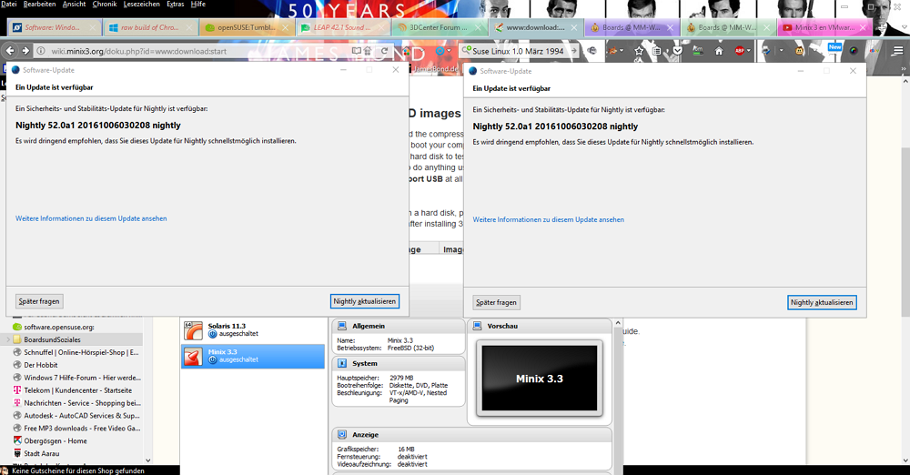 Der hat gerade ein Update gemacht 49MB und will mit den nächsten schritt den Browser neu starten, den sah ich das noch ein Fenster offen ist wo schon wider ein Update machen will mit 8.5MB, noch bevor ich das erste Update abschließen kann, da hat es aber Mozilla Eilig. :lol: