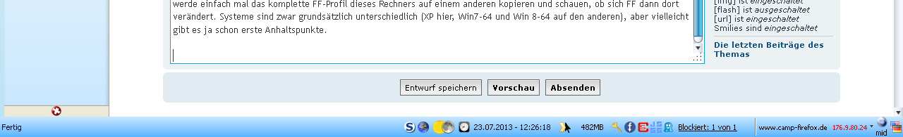Ach ja: Firefox begrüßte mich beim 1. Start nach Restore des Profils mit "schön dass Du wieder da bist. Lange Zeit .... Soll ich aufräumen ?"