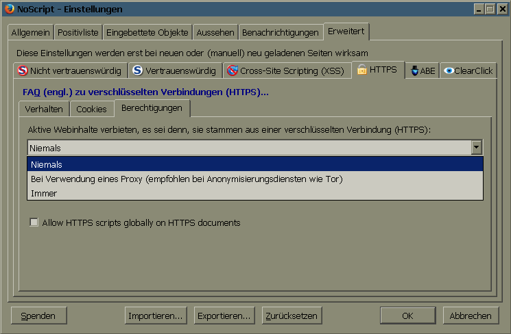 Hab mir die NoScript HTTPS Settings auch gerade mal angesehen.