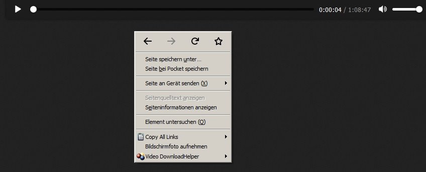 Bei mir sieht das Kontextmenü an der gleichen Stelle anders aus. Ich habe ein Bild (.jpg) gemacht, aber ich kriege das hier nicht rein...Es gibt offenbar verschiedene Firefox-Versionen. Meine derzeitige nennt sich: