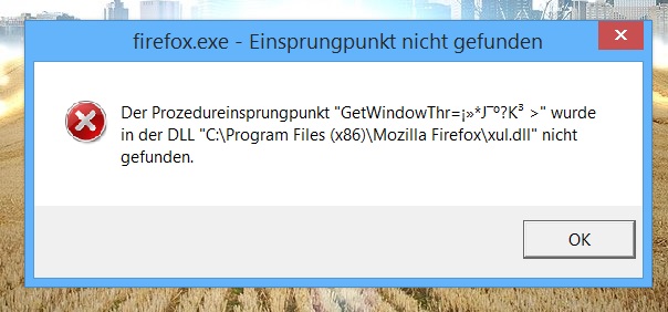 als ich gerade eben FF (28) starten wollte, bekam ich unten angehängte Fehlermeldung. Als ich auf OK geklickt habe, öffnete sich ein anderes Fenster mit der Meldung: "Couldn't load XPCOM". Ein Klick auf OK hat das Fenster geschlossen und nichts weiter ist passiert. Ein weiterer Versuch, FF zu starten hatte dasselbe Ergebnis. Ich habe dann den Rechner (Windows 8.1 64 Bit) neu gestartet und jetzt scheint wieder alles zu gehen. Kann jemand dazu etwas sagen? Kann dieser Fehler mal vorkommen oder muss ich mir um Viren, usw. Gedanken machen?