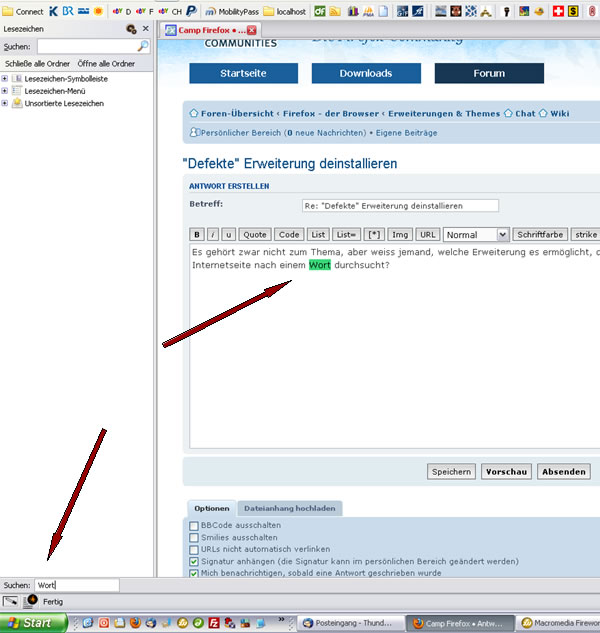 Es gehört zwar nicht zum Thema, aber weiss jemand, welche Erweiterung es ermöglicht, dass man eine Internetseite nach einem Wort durchsuchen kann?