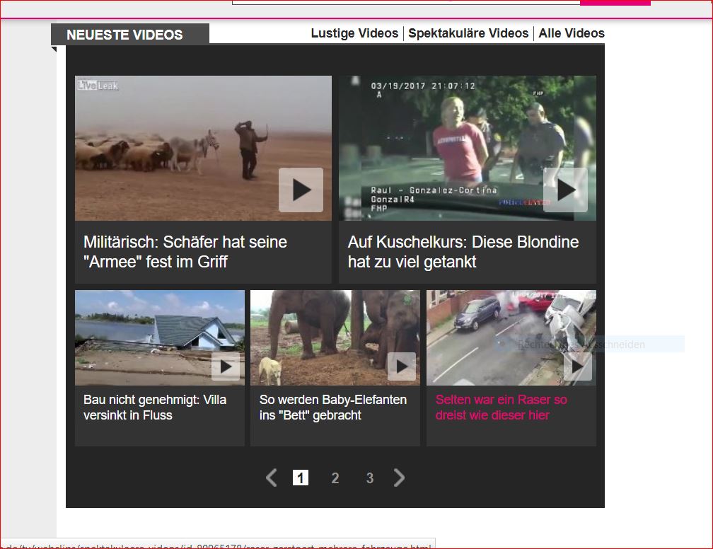 Es geht um ALLE Videos, z.B.auf der Webseite von t-online.de .