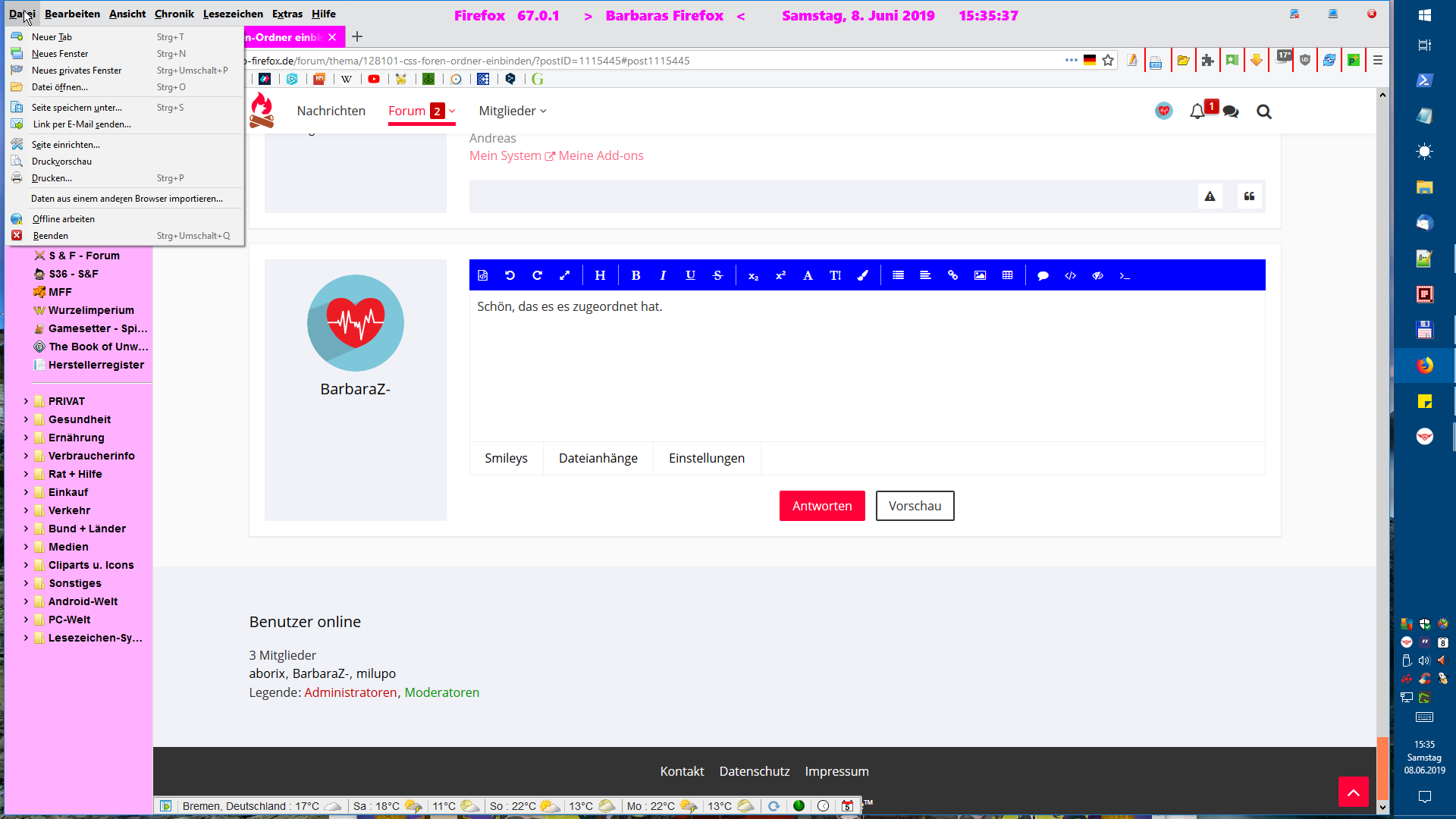 Ach ja, ich habe ja über dem Antwortkästchen die Symbolleiste auch schön in blau, wie ich es mag. Allerdings finde ich, sind die Symbole nicht alle "selbstsprechend". Heißt, lassen sich deren Bedeutungen mit Hover ansprechen?