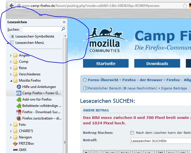 Danke für eure Mühe. Zum Bild: ok ist klein, aber man siet deutlich die viele Icon oben rechts und die sehr breiten Navigation-und Lesezeichen Symbolleisten. Habe jetzt erstmal das Abbild zurückgeschrieben, dann werde ich weitersehen. :-??