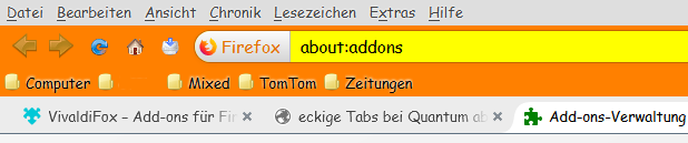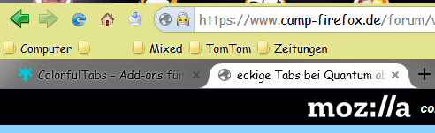 Hmm, seltsamer Weise sind nicht einmal "ColorfulTabs" und "Vivaldifox" in der Lage, die Tabs einzufärben.