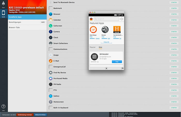 Via Firefox/Extras/Addons... dort den Simulator suchen, installieren. Aufruf via App-Manager und im unteren Bereich des FF-Fensters den blauen Button "Simulator starten" anklicken, ein bisschen reinschnuppern wie es sich anfühlt ![]()