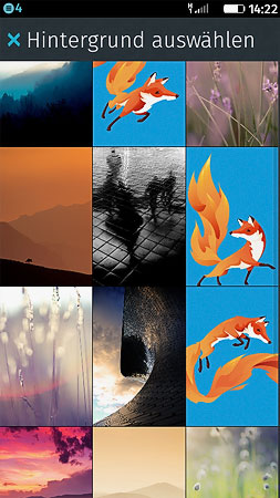 Für das Flame kenne ich die Auflösung 854x480 (FWVGA), ich könnte also ein vorbereitetes jpg oder png auf den internen Speicher oder SD-Card hochladen, auf einer freien Stelle wo sich kein Appsymbol befindet lange drücken und das Aufpeppen der Meldung abwarten, Bild wählen und fertig (zum besseren Verständnis ein kleines Bildchen- FFOS ist kein trockener Stoff