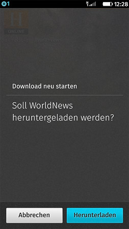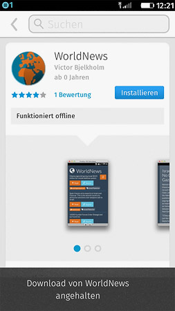 Warum angehalten ? Nachsehen auf den letzten Screen,also nochmal- Löschen des halbdurchscheinenden Icons von World News, Neuinstallation bleibt immer irgendwo hängen, dann einfach mal einen Klick auf dieses halbseidene Etwas und "möchten Sie World News herunterladen ?" "Klar, wird langsam Zeit daß das mal klappt" aber heut wird das Nix, irgendwo bleibt die Installation hängen.