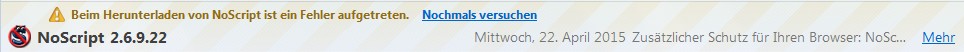 - 'NoScript 'nicht mehr aktualisierbar sind? Fehlermeldung: "Beim Herunterladen von... ist ein Fehler aufgetreten..."