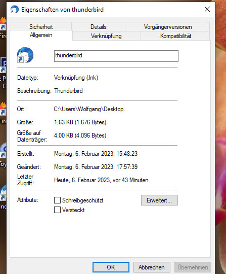 Ob die Verknüpfung zu Thunderbird auf em eigenen Desktop liegt, kann man im Explorer ganz leicht prüfen.