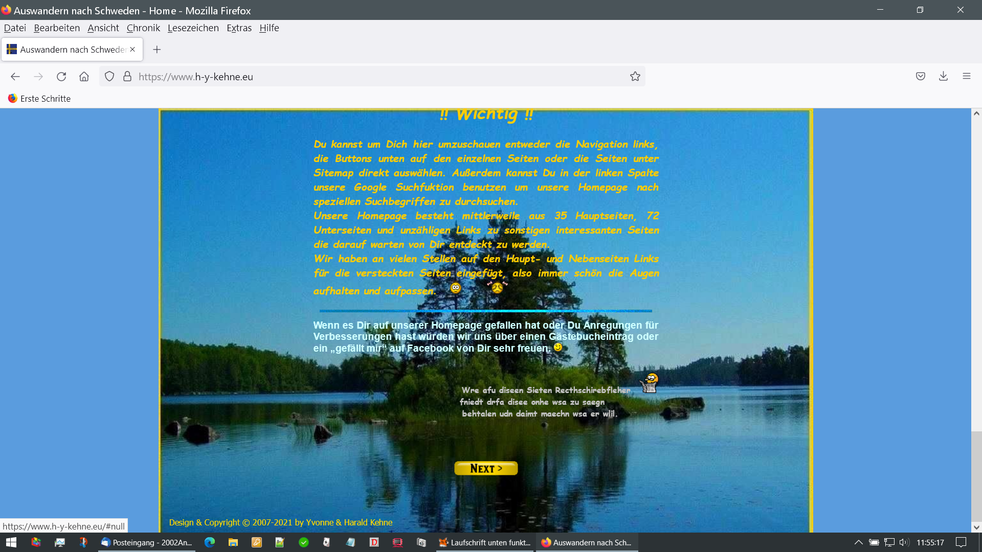 Ich hab die Laufschrift unten entfernt und den Text zentriert um das Problem zu umgehen. Danke für eure Hilfe und Erklärungen. Wenn ich im Winter Zeit hab werde ich mal schauen. Hab bei dem Baukasten die Möglichkeit eine zweite Testseite zu erstellen und die paralell zu bearbeiten. Mal sehen wie der Winter wird.