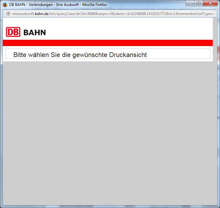 Die Druckansicht von bahn.de füllt sich nur unvollständig (siehe Anhang), obwohl ich die Chronik gelöscht und Firefox neu installiert habe. Außerdem habe ich ich die Hardwarebeschleunigung ausgeschaltet. Woran kann das Problem liegen?