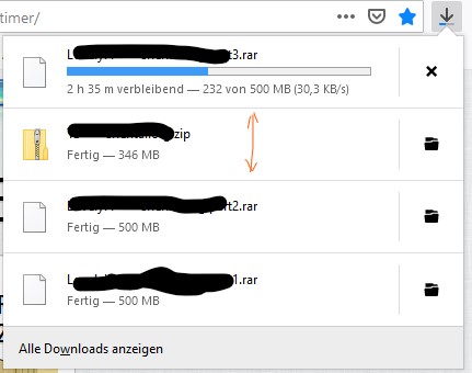 Starte ich jetzt genau 3 Downloads dann habe ich 3 mal den "fliegenden" roten Pfeil.