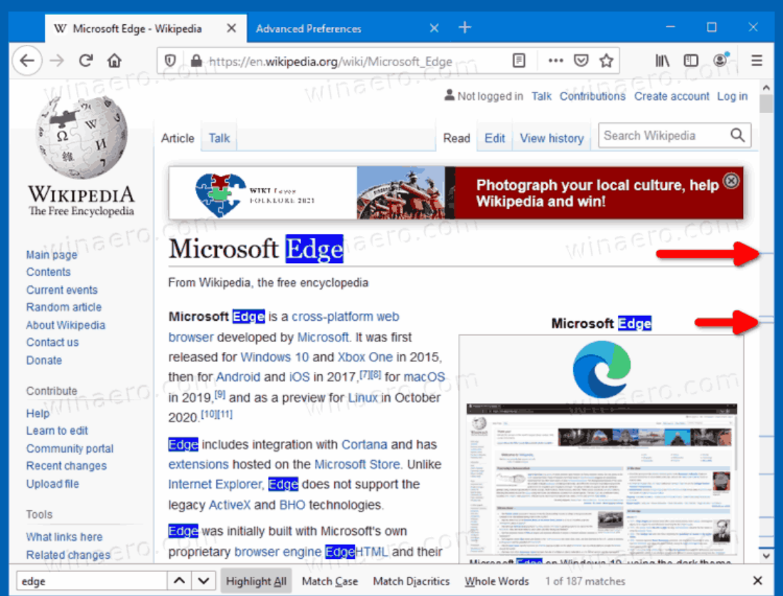 Ich konnte mittels Einstellung auf "4" die Bildlaufleiste wie Windows 10 einstellen. Allerdings hat das keinen Unterschied gemacht, ich sehe mit der Strg+F Textsuche immer noch nicht in der Bildlaufleiste die gelben Markierungen an den richtigen Stellen.