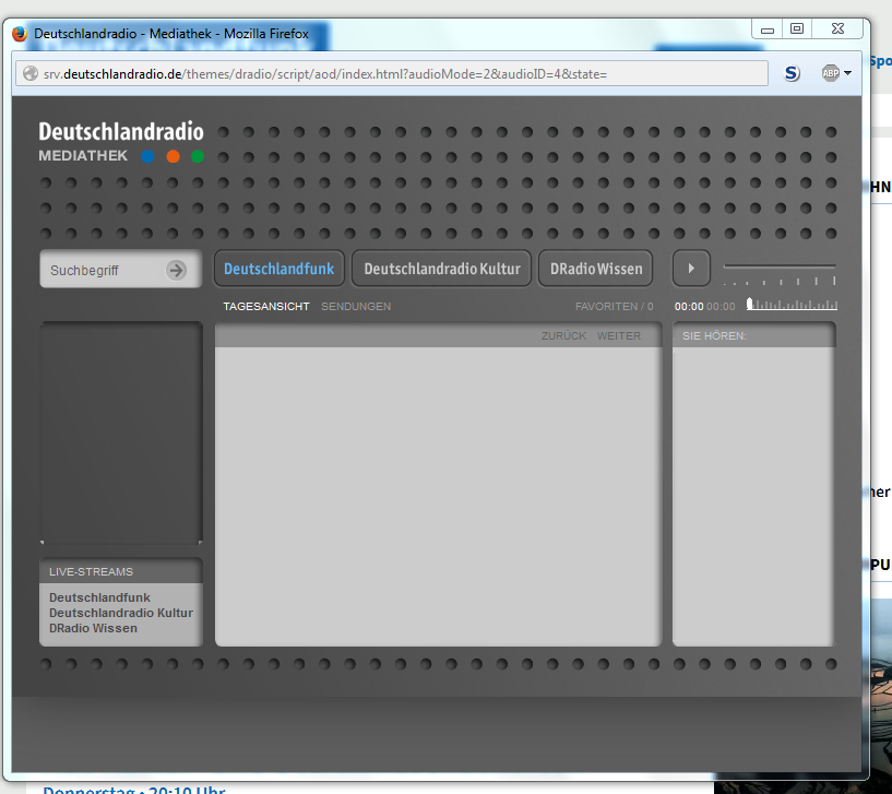 wenn ich auf Deutschlandfunk-Mediathek gehe erhalte ich diese Maske:
