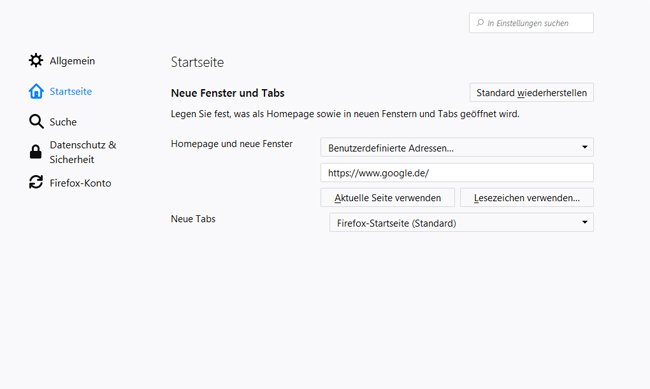leere Seite oder Firefox Standardseite einstellen, nachdem ich gesucht habe im Netz habe ich gesehen, dass es da