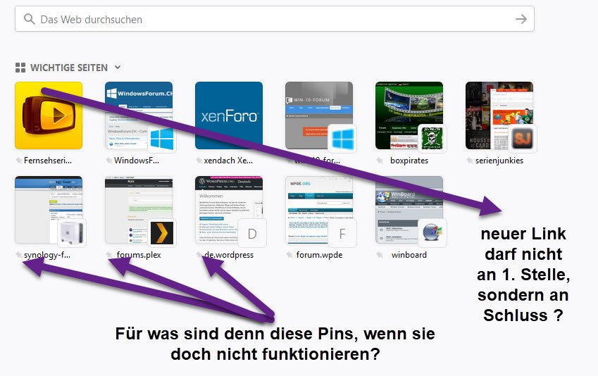 und vor allem, dass ein neue selber erstellter Link an Platz 1 rückt, sondern am Schluss, oder ich kann diesen
