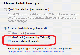 Installiere ich Miro via "Quick Installation" ( Standardeinstellung),sind die Suchmaschinen wech und als Startseite ist Yahoo/Miro eingestellt.