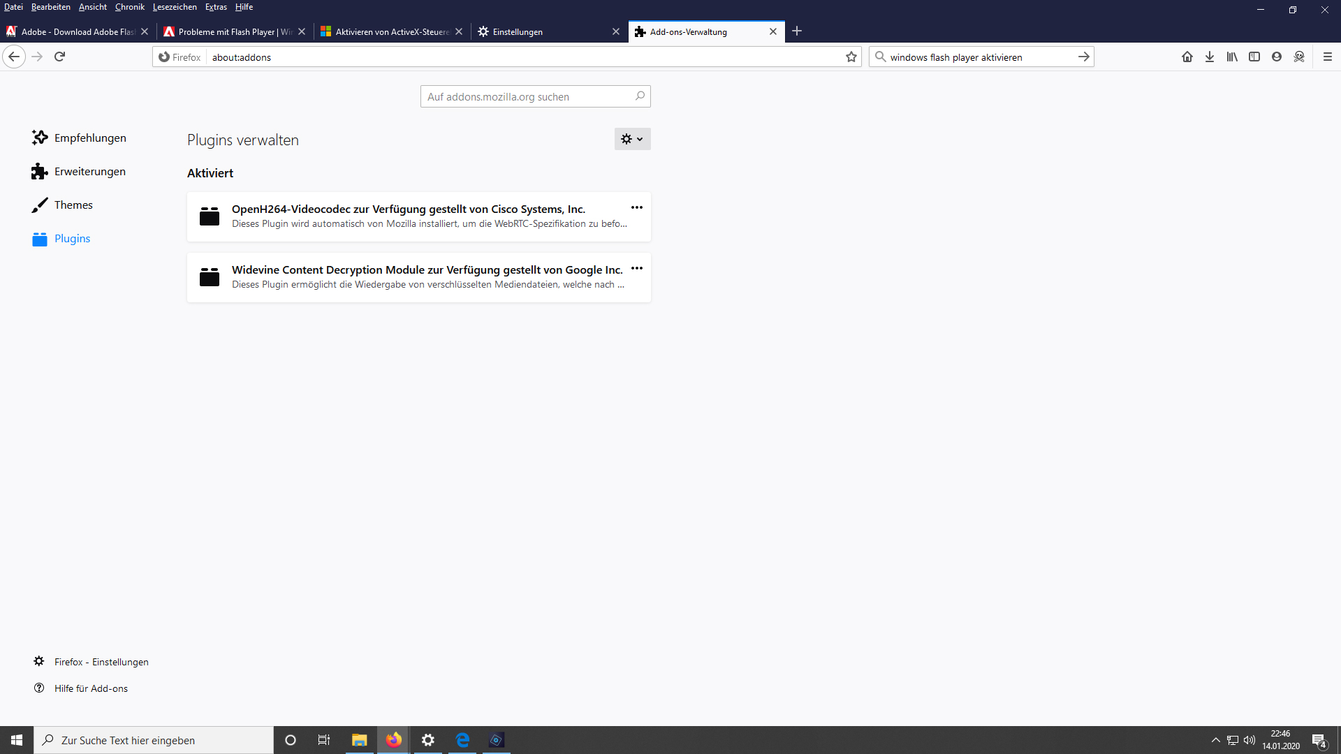 ich habe ein kleines Problem, das Plugin vom Adobe-Flash-Player installiert sich nicht.