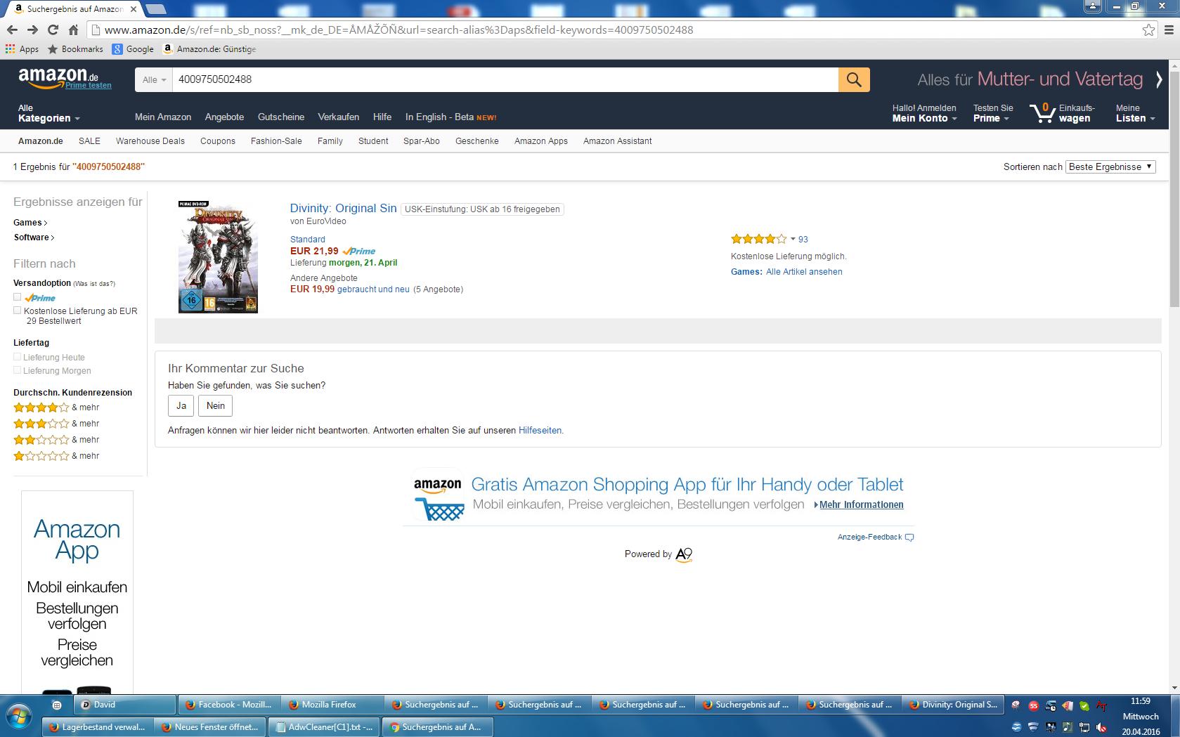 Jetzt muss ich doch noch einmal auf dem Thema rumreiten. Mir ist gestern aufgefallen, dass ich bei meinem Privat Rechner das Problem nicht habe. Suche ich hier was in Amazon und klicke das Ergebnis an, wechselt das bestehende Fenster einfach in den Artikel und es wird kein neues Fenster oder Tab aufgemacht. Ich habe nun die Einstellungen komplett abgeglichen, bis aufs letzte Detail und trotzdem bleibt der Unterschied. Version ist auf beiden Rechnern 45.0.2.