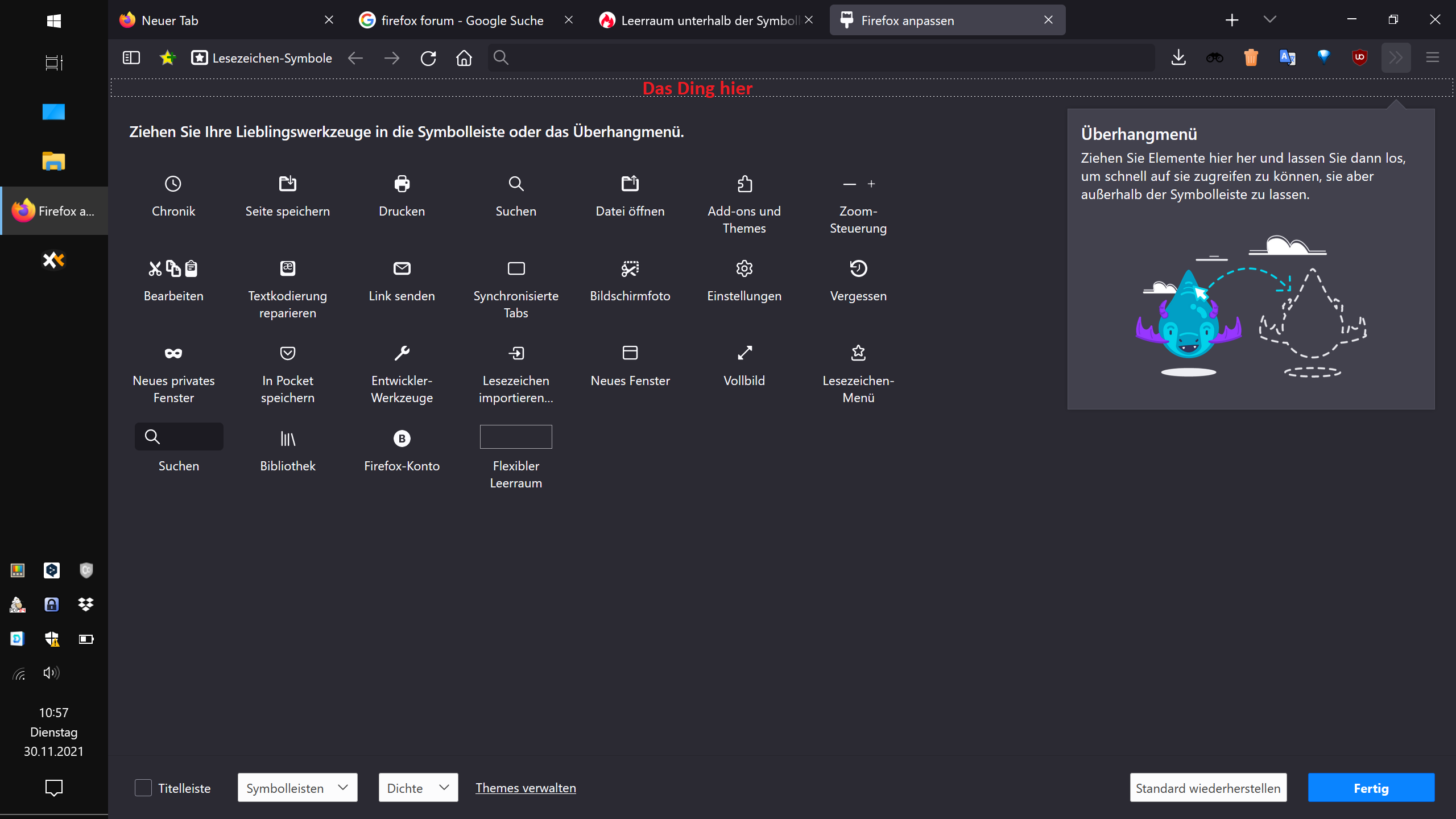 Unter "Firefox anpassen" kann die Dichte zwischen Normal (immer noch extrem groß)