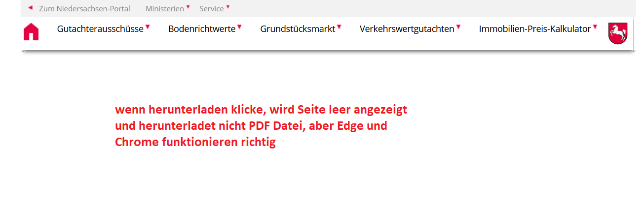 wenn ich diese URL mit Firefox aufrufe und und auf icon Herunterladen (unten recht) klicken, passiert nicht (PDF Datei wird nicht heruntergeladen) aber mit Chrome oder Edge habe keine Probleme. Ich habe auch mit Firefox ohne Konfiguration und mit neue Profile geprüft, aber wieder gleiche gleiche Probleme!