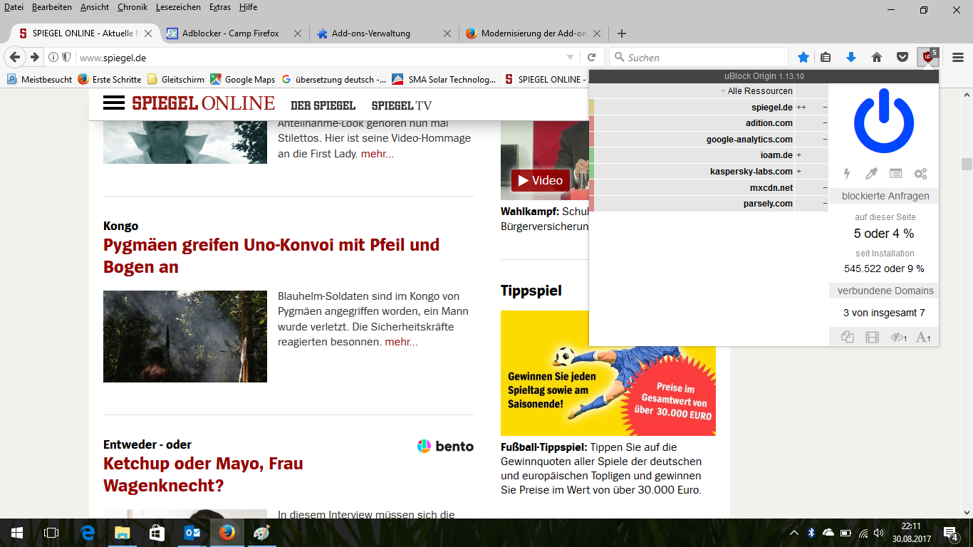 Kaspersky soll weiterhin uneingeschränkt funktionierne und Spiegel.de möchte ich frei "schalten".