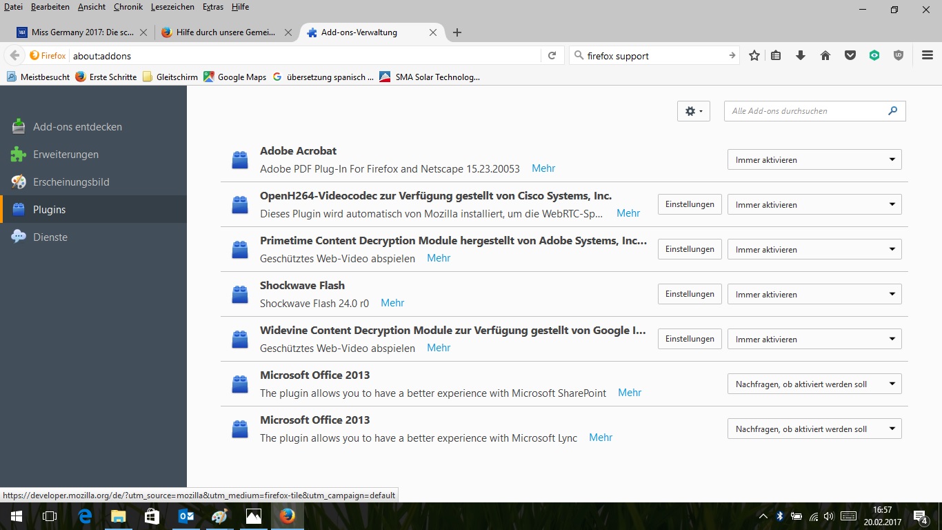 dieselbe Plugins sind bei mir auch installiert, und noch ein paar dazu (Adobe Acrobat und Microsoft office) -
