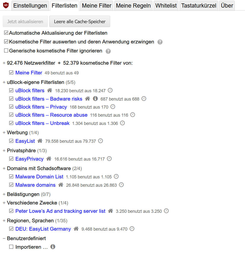 Ja, ich habe es eben die neuen Filterlisten eingefügt.