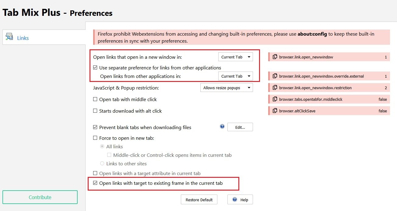 user_pref("browser.tabs.insertRelatedAfterCurrent",false); /* Tabs wieder rechts öffnen - wie in TMP */