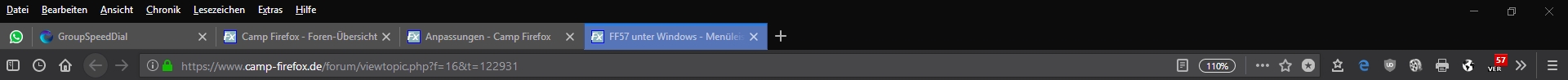 Beim Firefox 52.x ESR und FF 57.x ist die Menüleiste standardmäßig ganz oben