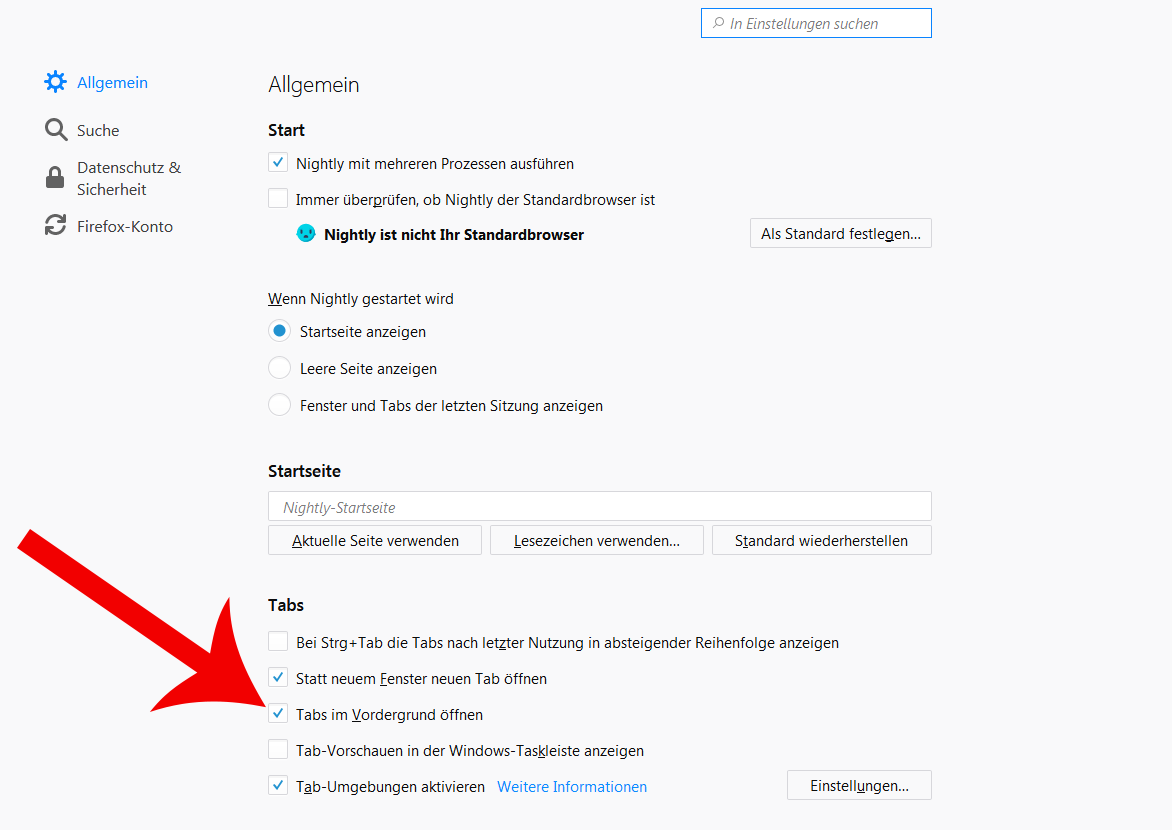Screenshot ist von Nightly