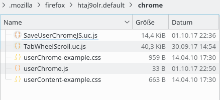 Im Profilordner /chrome/ liegt die userChrome.js und TabWheelScroll.uc.js
