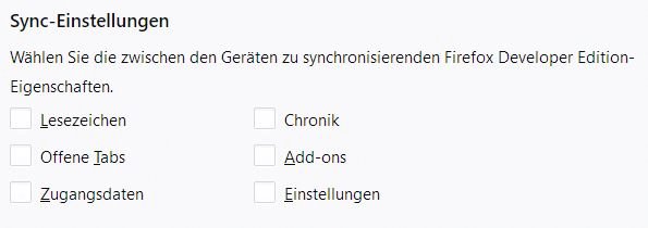 Du kannst unter Firefox-Konto die Sync-Einstellungen nutzen, um nur bestimmte Dinge zu synchronisieren: