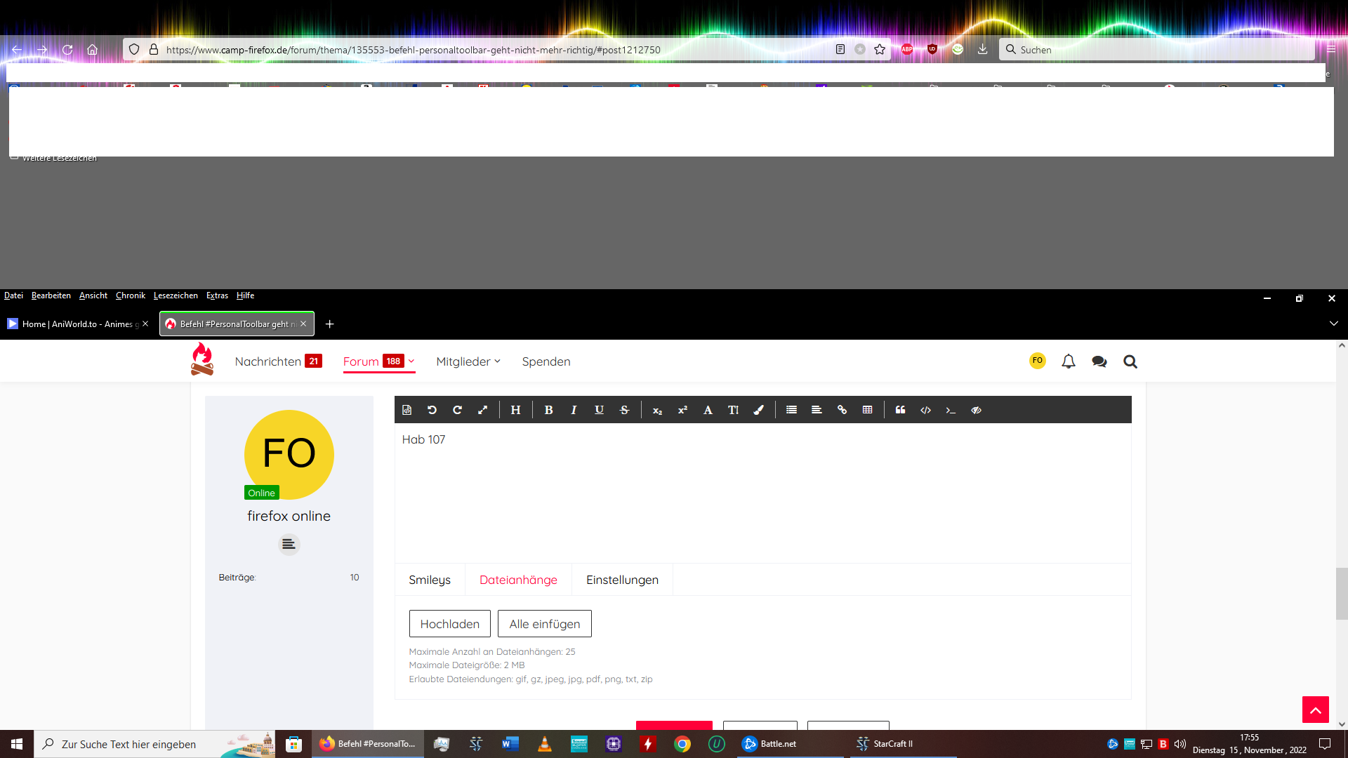 Nach dem Heute ein Upfate von FF war Zieht sich meine #PersonalToolbar leiste sehr nach unten , hab dann versuch die werte zu ändern hatte aber nix gebracht kann mir bitte jemand da helfen hier der Befehl in meiner userChrome.css