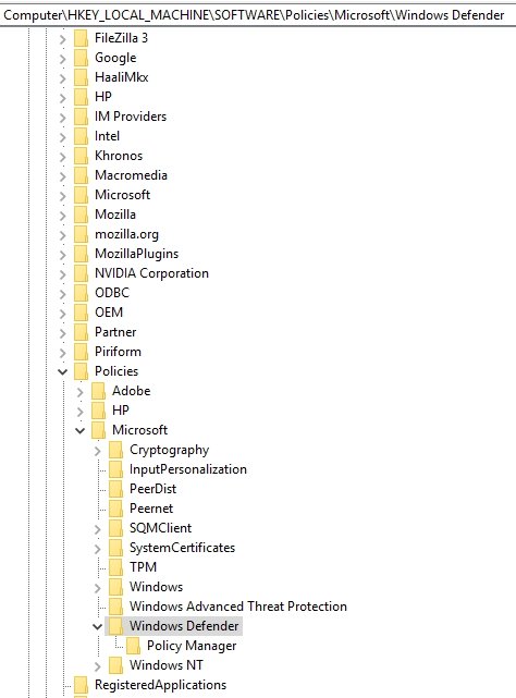 Hab diesen Pfad genommen: Computer\HKEY_LOCAL_MACHINE\SOFTWARE\Policies\Microsoft\Windows Defender