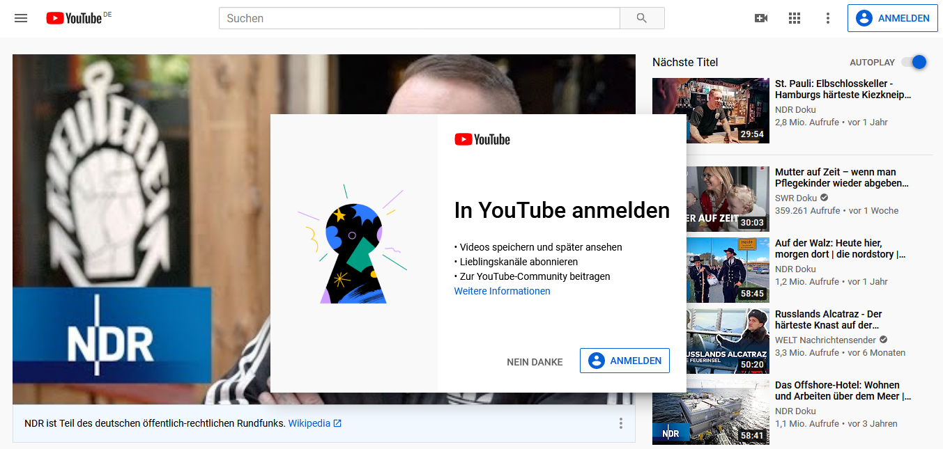 Jetzt muss nach dem Öffnen des Browsers nur noch das erste Video 2 Mal gestartet werden.