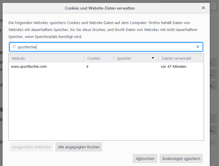 Hatte vorher natürlich von den entsprechenden Websites die Cookies gelöscht zur Grundreinigung.