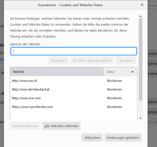 ich habe einigen Websites unter Einstellungen --> Cookies und Website-Daten --> Berechtigungen verwalten... verboten, Cookies zu speichern. Gehe ich jetzt dort unter Daten verwalten... sehe ich, dass die eigentlich verbotenen Websites trotzdem Cookies gespeichert haben.