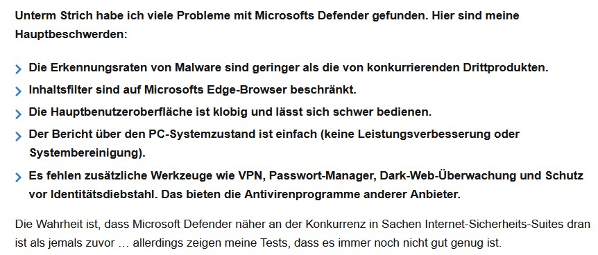 ... da hast Du natürlich recht. Ich werde jetzt den Defender ein paar Wochen ausprobieren und dann ggf. dabei bleiben.