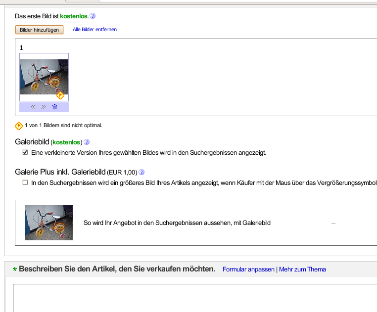 Und was willst Du mit dem Foto zeigen? Ich kann mir schon denken, was es sein soll, aber: Thema verfehlt (s. andere Postings in diesem Thread). Hier ist das, worum es geht (die Seite für die Angebotserstellung nach dem vermeintlichen Upload beim FF): [attachment=1]eBay_Foto_Firefox_2.png[/attachment] Und so sieht das ganze nach dem Upload beim Opera aus: [attachment=0]eBay_Foto_Opera_2.png[/attachment] Nun klarer?