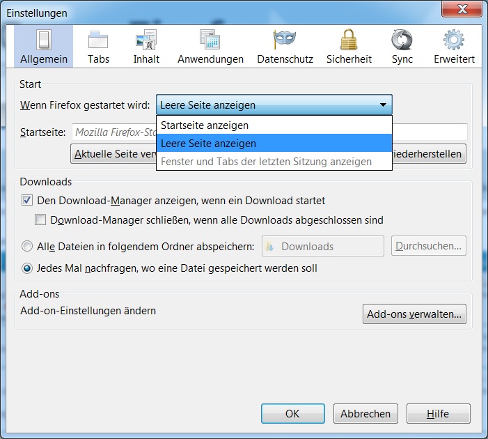 FF Erstinstallation - Einstellungen nicht alle aktiv