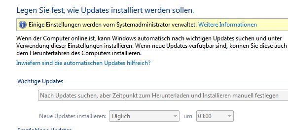 Du kannst es nicht ändern weil die Auswahl unter Wichtige Updates ausgegraut ist?