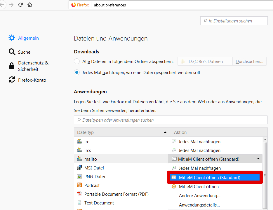 In "Einstellungen -> Anwendungen" ist bei mir bei "mailto" das Standardprogramm Winmail eingetragen.