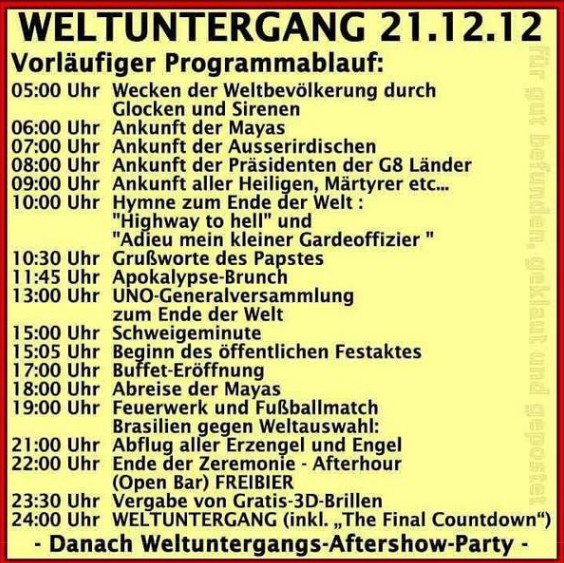 Tagesplanung für den morgigen Weltuntergang