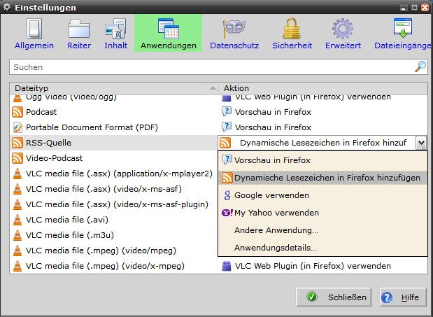 ich hab das Problem, dass ich seit neuestem, wenn ich Feeds anlegen will, immer auf der Yahoo-Seite